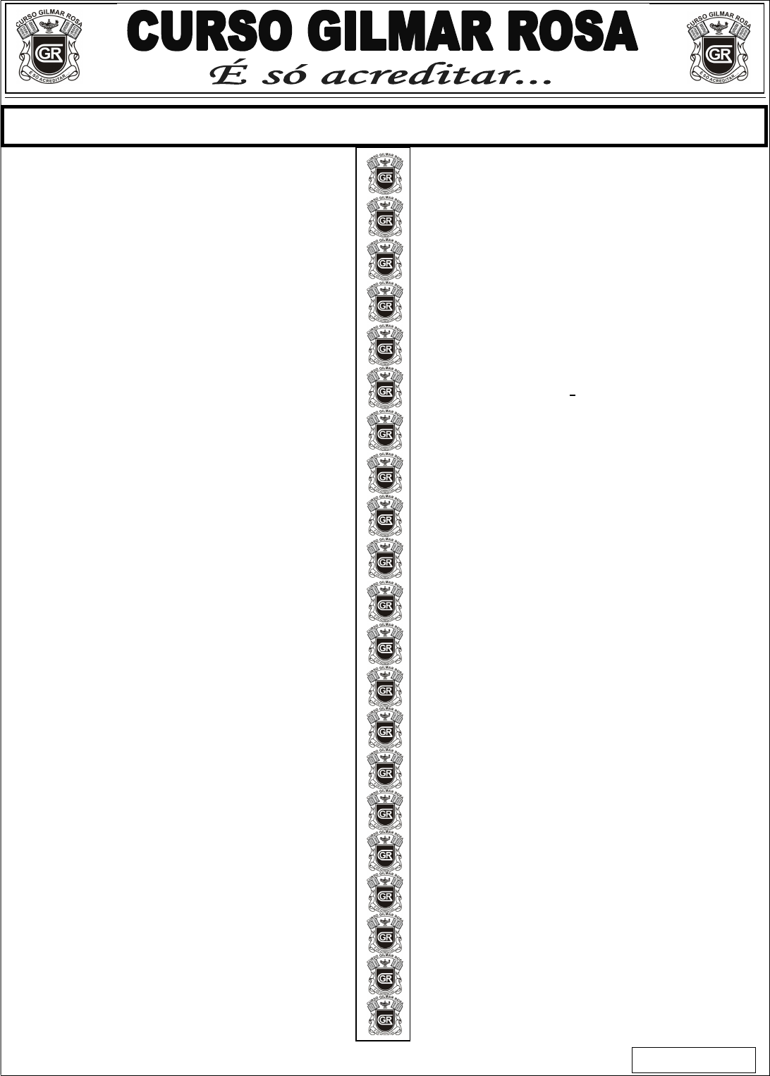 C U R S O G I L M A R R O S A – É S Ó A C R E D I T A R . . . RUA DOM PEDRO I, 85 SANTA CRUZ – RIO DE JANEIRO – RJ / TEL.: 3365-0100 DIREITO CONSTITUCIONAL – TURMA DESIPE I 2011 – PROFº ALBERTO MÁRCIO JAN –2011 EAGS – SAD Exercícios de fixação “ Um homem precisa de alguém para amar, de algo para sonhar ou de alguma coisa para fazer”. 01 - SD PM MINAS GERAIS 2007 A Declaração Universal dos Direitos Humanos foi promulgada em: A. ( ) 1749, durante a campanha militar de Átila o rei dos Unos. B. ( ) 1948, após a segunda guerra mundial. C. ( ) 1842, durante a guerra dos confederados americanos. D. ( ) 1776, com a libertação das treze colônias Americanas. 02 - SD PM MINAS GERAIS 2007 Sobre Direitos e Garantias Fundamentais é correto afirmar : A. ( ) homens e mulheres são iguais em direitos e obrigações, nos termos da lei, mas somente após o casamento civil. B. ( ) ninguém será obrigado a fazer ou deixar de fazer alguma coisa senão em virtude de força maior a critério da autoridade policial. C. ( ) ninguém será submetido a tortura nem a tratamento desumano ou degradante, não valendo este preceito em caso de operações militares de caráter especifico devidamente comandadas. D. ( ) é assegurado o direito de resposta, proporcional ao agravo, além da indenização. 03 - SD PM MINAS GERAIS 2007 A nossa atual constituição marcou época, recepcionou as premissas alinhadas na “Declaração Universal dos Direitos Humanos” como nenhuma outra antes o fizera, abrindo caminho para a plena reafirmação dos Direitos Humanos e para novas conquistas sociais. Por isto mesmo ela passou a ser chamada informalmente de: A. ( ) a constituição da Paz. B. ( ) a constituição Cidadã. C. ( ) a constituição dos excluídos. D. ( ) a constituição do século XXI. 04 - SD PM MINAS GERAIS 2007 Conceder-se-á “mandado de injunção“ sempre que: A. ( ) alguém sofrer ou se achar ameaçado de sofrer violência ou coação em sua liberdade de locomoção, por ilegalidade ou abuso de poder. B. ( ) para proteger direito líquido e certo, não amparado por "habeasdata", quando o responsável pela ilegalidade ou abuso de poder for autoridade pública ou agente de pessoa jurídica no exercício de atribuições do Poder Público. C. ( ) para assegurar o conhecimento de informações relativas à pessoa do impetrante, constantes de registros ou bancos de dados de entidades governamentais ou de caráter público. D.( ) a falta de norma regulamentadora torne inviável o exercício dos direitos e liberdades constitucionais e das prerrogativas inerentes à nacionalidade, à soberania e à cidadania. 05. SD DA PM RO 2005 A visão dos Direitos Humanos, modernamente, não se enriqueceu apenas com a aproximação dos “direitos econômicos e sociais” aos “direitos de liberdade”. Ampliaram - se também os horizontes. Surgiram os chamados “direitos humanos da terceira geração”, “os direitos da solidariedade”. Estes seriam: A) o direito à livre iniciativa, à livre manifestação da vontade, à liberdade de ir e vir; B) o direito ao desenvolvimento, à paz, a um meio ambiente sadio e ecologicamente equilibrado; C) o direito à segurança social, à educação, o direito das minorias; D) o direito ao livre-cambismo, à liberdade política, o direito de liberdade de pensamento e expressão; E) o direito à segurança social, à saúde mental e física, o direito de participar da vida cultural e do progresso científico. 06. SD DA PM RO 2005 Na modernidade, o marco mais significativo no reconhecimento dos Direitos Humanos é: A) a Declaração Universal dos Direitos Humanos de 1948; B) a Revolução Norte-Americana de 1776; C) a Revolução Francesa de 1789; D) a promulgação da Constituição Brasileira de 1988; E) a promulgação da Constituição Francesa de 1848. 07. SD DA PM RO 2005 A expressão “Direitos Humanos” designa os “direitos fundamentais”, dos quais os demais direitos são decorrência. Assim, na verdade, os Direitos Humanos não são um ramo a mais do Direito, como o Direito Penal, o Direito Comercial,etc. Os Direitos Humanos são a raiz de todos os direitos. As violações a estes direitos fundamentais representam uma questão bastante grave. Das opções abaixo, não se configura como um abuso aos direitos humanos: A) proferir ofensa sobre a etnia, opção religiosa ou sexual de um cidadão; 2 2 B) agredir física e verbalmente os vizinhos; C) discriminar uma pessoa por ela pertencer a um gênero diferente do seu; D) explorar o trabalho de uma criança ou um adolescente; E) inviabilizar a locomoção e acessibilidade de pessoas com deficiência física. 08. SD DA PM RO 2005 Sobre o trabalho desenvolvido por uma Corregedoria indique a afirmativa errada: A) receber e apurar denúncias de violência; B) receber a apurar denúncias de corrupção; C) realizar investigação apenas dos policiais de baixa patente; D) realizar o controle interno da instituição policial; E) atuar conjuntamente com os órgãos de controle externo. 09. SD DA PM RO 2005 A construção de um espaço público democrático implica: A) usar sempre de força para manter a “ordem”; B) garantir aos indivíduos o usufruto de uma liberdade irrestrita; C) favorecer os “bons” e reprimir os “maus”; D) negar qualquer tipo de liberdade individual; E) garantir que as regras sejam aplicadas igualmente a todos. 10. SD DA PM RO 2005 Uma das interpretações sobre o aumento da violência em todo o Brasil tende a relacionar violência à pobreza. Entendendo que a associação entre violência e pobreza não encontra respaldo nos dados estatísticos, a melhor opção de políticas públicas a ser implantada na prevenção à violência junto às comunidades pobres deve ser: A) remover as comunidades pobres para as áreas mais distantes; B) acabar com a violência, distribuindo comida para as populações pobres; C) acabar com a violência, distribuindo casas para as popula