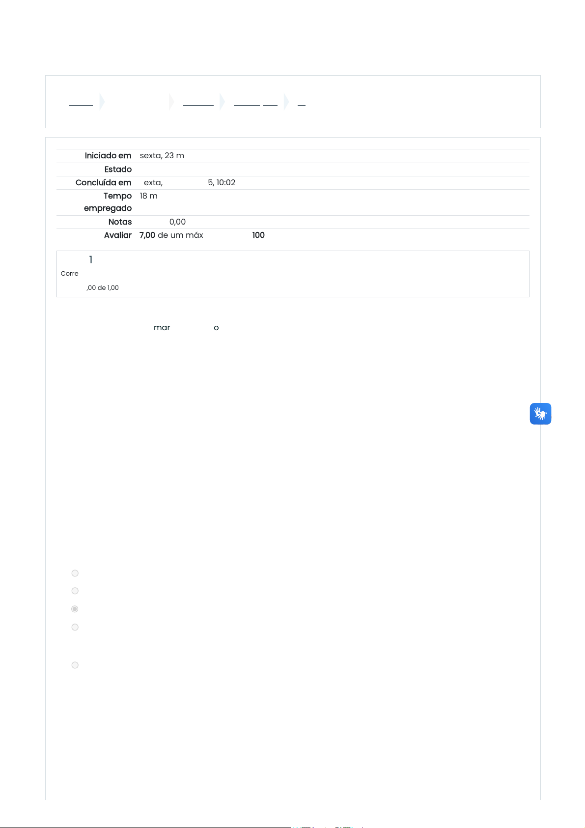 Painel Meus cursos N2071D1 Avaliações R1 Iniciado em sexta, 23 mai 2025, 09:44 Estado Finalizada Concluída em sexta, 23 mai 2025, 10:02 Tempo empregado 18 minutos 15 segundos Notas 20,00/20,00 Avaliar 7,00 de um máximo de 7,00(100%) Questão 1 Correto Atingiu 1,00 de 1,00 A característica mais marcante da população brasileira é seu alto grau de diversidade étnica, isso é resultado da nossa história, pois recebemos povos de todos os continentes, Com relação à diversidade étnica brasileira e ao contexto socioeconômico que a envolve, analise as afirmativas a seguir. I. Pela Constituição brasileira de 1988, os povos indígenas têm direito de viver em suas terras, falar sua língua e praticar livremente sua cultura, o que, na prática, os isenta de se envolverem em lutas pela demarcação de suas terras e pelo respeito aos seus direitos. II. Segundo o IBGE, pelo seu censo demográfico de 2010, mais da metade da população brasileira se declarou "preta" ou "parda", sendo a presença de descendentes africanos mais forte nas regiões Nordeste e Sudeste. III. A partir da segunda metade do século XVIII, o Brasil recebeu muitos imigrantes, sobretudo portugueses, italianos, alemães, chineses e coreanos, os quais se fixaram na Região Sul do país, pelo fato de a mesma ter facilitado a reprodução de seus costumes. IV. O mameluco, miscigenação entre o índio e o negro, sofreu muito com a discriminação imposta pela sociedade brasileira, a qual era majoritariamente composta por brancos, até o início do século XX. Assinale a opção correta. Escolha uma opção: a. Apenas a afirmativa III é verdadeira. b. Apenas as afirmativas I e IV são verdadeiras. c. Apenas a afirmativa II é verdadeira. d. Apenas a afirmativa I é verdadeira. e. Apenas as afirmativas II e III são verdadeiras. Sua resposta está correta. A resposta correta é: Apenas a afirmativa II é verdadeira. 23/05/2025, 13:52 R1: Revisão da tentativa https://ead.universo.edu.br/mod/quiz/review.php?attempt=2206086&cmid=698303 1/16 https://ead.universo.edu.br/my/ https://ead.universo.edu.br/course/view.php?id=8639 https://ead.universo.edu.br/course/view.php?id=8639#section-9 https://ead.universo.edu.br/mod/quiz/view.php?id=698303 Questão 2 Correto Atingiu 1,00 de 1,00 COMBATE À VIOLÊNCIA CONTRA A MULHER A violência contra a mulher só aumenta no Brasil. As leis são relativamente severas, mas mesmo assim não conseguem coibir tal ato. Apesar de ser um crime e uma grave violação de direitos humanos, esse tipo de violência segue vitimando milhares de brasileiras. Em 2016 uma importante lei em defesa da dignidade e não violência contra a mulher completou 10 anos. Disponível em . Acesso em: 23 agosto 2016. Assinale a alternativa que apresenta a lei que completa 10 anos em 2016 e é um marco no combate à violência contra a mulher. a. Lei do assédio. b. Lei Maria da Penha. c. Lei da liberdade de expressão. d. Lei da moralidade. e. Lei do crime hediondo. Sua resposta está correta. A resposta correta é: Lei Maria da Penha. 23/05/2025, 13:52 R1: Revisão da tentativa https://ead.universo.edu.br/mod/quiz/review.php?attempt=2206086&cmid=698303 2/16 Questão 3 Correto Atingiu 1,00 de 1,00 A expressão “ideologia de gênero” passou a ser usada por setores conservadores da sociedade brasileira, embora não corresponda a nenhuma linha de pensamento, e sim a um slogan que tende a reafirmar valores morais tradicionais e negar a igualdade de direitos às mulheres e pessoas LGBTI+. Por sua vez, os estudos de gênero têm como objetivo mapear diferenças sociais entre gêneros e mostrar como surgem as desigualdades, jamais impor um estilo de vida. De acordo com o glossário proveniente desses estudos, se a pessoa se identifica com o gênero feminino apesar de ter sido biologicamente designada ao nascer como pertencente ao sexo masculino, e sente atração sexual e afetiva por pessoas do gênero feminino, ela é denominada: a. não binário heterossexual. b. mulher trans homossexual; c. sem gênero; d. homem trans homossexual; e. homem trans heterossexual; Sua resposta está correta. A resposta correta é: mulher trans homossexual; 23/05/2025, 13:52 R1: Revisão da tentativa https://ead.universo.edu.br/mod/quiz/review.php?attempt=2206086&cmid=698303 3/16 Questão 4 Correto Atingiu 1,00 de 1,00 Questão 5 Correto Atingiu 1,00 de 1,00 Leia com atenção aos fragmentos abaixo: Marilena Chauí (2000) explica que a conduta ética é aquela na qual o agente sabe o que está e o que não está em seu poder realizar. Ela se refere, portanto, ao que é possível e desejável para um ser humano. Saber o que está em nosso poder significa, principalmente, não se deixar arrastar pelas circunstâncias, nem pelos instintos, nem por uma vontade alheia, mas afirmar nossa independência e nossa capacidade de autodeterminação (...) Todo ser humano é dotado de consciência moral, que o faz distinguir entre certo e errado, justo ou injusto, bom ou ruim. Com isso, é capaz de avaliar suas ações, sendo, portanto, capaz de ética. Esta vem a ser os valores, que se tornam os deveres incorporados por cada cultura e são expressos em ações. A ética é, pois, a ciência do dever, da obrigatoriedade, a qual rege a conduta humana (CAMPOS; GREIK; VALE, 2002). A Ética refere-se ao "estudo dos juízos de apreciação referentes à conduta humana suscetível de qualificação do ponto de vista do bem e do mal, seja relativamente a determinada sociedade, seja de modo absoluto" (FERREIRA, 1999, p. 848 - 849). Agora, assinale o item INCORRETO a. Ética e Moral são dois conceitos distintos. b. A democracia no Brasil deve ser vivida a partir da observação de padrões éticos com seus princípios definidos na Constituição de 1988. c. Ética e Moral são conceitos que traduzem o mesmo significado. d. A Ética se traduz na reflexão acerca dos valores morais e. Os valores morais individuais estão subordinados aos padrões da Ética nas de