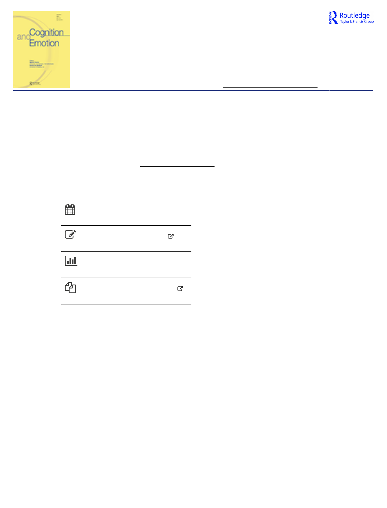 Full Terms & Conditions of access and use can be found at http://www.tandfonline.com/action/journalInformation?journalCode=pcem20 Cognition & Emotion ISSN: 0269-9931 (Print) 1464-0600 (Online) Journal homepage: http://www.tandfonline.com/loi/pcem20 Emotion Regulation: Past, Present, Future James J. Gross To cite this article: James J. Gross (1999) Emotion Regulation: Past, Present, Future, Cognition & Emotion, 13:5, 551-573, DOI: 10.1080/026999399379186 To link to this article: https://doi.org/10.1080/026999399379186 Published online: 31 Aug 2010. Submit your article to this journal Article views: 3886 Citing articles: 381 View citing articles http://www.tandfonline.com/action/journalInformation?journalCode=pcem20 http://www.tandfonline.com/loi/pcem20 http://www.tandfonline.com/action/showCitFormats?doi=10.1080/026999399379186 https://doi.org/10.1080/026999399379186 http://www.tandfonline.com/action/authorSubmission?journalCode=pcem20&show=instructions http://www.tandfonline.com/action/authorSubmission?journalCode=pcem20&show=instructions http://www.tandfonline.com/doi/citedby/10.1080/026999399379186#tabModule http://www.tandfonline.com/doi/citedby/10.1080/026999399379186#tabModule Emotion Regulation: Past, Present, Future James J. G ross Stanford University, California, USA M odern em ot ion th eor ies empha sise the adap t ive va lue of emot ions. Emo - tions are by no means always help fu l, however. They often must be regu lated . The study of emot ion regu lation has its o r igins in the psychoa na lytic and stress and cop ing trad it ions. Recen t ly, increa sed interest in emot ion regu la- tion has led to crucia l boundary ambigu it ies that n ow threaten progress in th is domain . I t is a rgued that d ist inct ions need to be m ad e between (1) regu lat ion of emo t ion and regu lation by emot ion ; (2) emot ion regu lat ion in self and emot ion regu lation in o thers; and (3) conscious and nonconscious emot ion regu lat ion . U sing a process model o f emot ion generat ion , th is review considers p rom ising research on basic p rocesses and ind ividua l d ifferences in emot ion regu lat ion and poses ® ve theoretica l cha llenges. INTRODUCTION C on tem p ora ry concep t ion s o f em otio n em p hasise em otion s’ posit ive ro le in adap ta t ion (e.g. L aza ru s, 1991; Too by & C o sm id es, 1990). E m o tion s a re sa id to ta ilo r cogn it ive style to situa t iona l dem a nds (C lore, 1994), t o facil- it a te d ecision -m ak ing (O a t ley & Joh nson-L a ird , 1987), to p repa re the in d ivid ua l for rap id m o to r respon ses (F r ijda , 1986), and to p rom o te lea rn - in g (C ah ill, P r ins, Weber, & M cG a ugh , 1994). I n ad d it ion to t hese in tr a - o rgan ism ic fu nct io ns, em otio ns a lso a re t hou gh t to h ave im por tan t socia l fun ct io ns. Fo r exa m p le, em o tio ns a re h eld t o p rovid e in fo rm a t ion abo u t behavio u ra l in ten t io ns (E km an , F riesen , & E llswo rth , 1972; F r id lu nd , 1994), to give clues a s t o whether som eth ing is goo d o r b ad (Wa lden , 1991), and to ¯ exib ly scr ip t com plex so cia l behavio u r (Averill, 1980). A t ten t ion to the fu nct ions em o tion s serve h as p rovided a forcefu l an d m uch-n eeded cou n terp o in t t o th e lon g-st an d ing view o f em ot io ns a s CO G N IT IO N AN D E M O TIO N , 1999, 13 (5), 551±573 Request s for rep r in ts sh ou ld be sen t to D r. James J. G ross, D epar tm ent o f Psycho logy, Stan ford U n iversity, St an fo rd, CA 94305-2130; E-m a il: jam es@psych .st an fo rd.edu . Prepar ation o f this a r t icle was su ppo rt ed by G rant M H 53859 from the N ationa l In st itu te o f M ental H ealth . The autho r wou ld like to th ank Bram F ridhandler, Judy M oskowitz, Jerry Pa rrot t , two anonym ous reviewers, and mem bers o f th e St anford P sychophysio logy L abora - to ry fo r help ful com men ts on an earlier d ra ft of this a r ticle. q 1999 P sychology P ress L td dysfunct ion a l and d isru p t ive (You ng, 1943). I ndeed , the trend toward fu nct ion a l app ro aches has ga th ered su ch m om en tu m tha t it n ow m ust be asked : A re em otion s ever to b e regu la ted ? In the pa st two decades, a n ew resea rch do m a in has em erged tha t is con cern ed with just th is qu est ion . T h e core const ruct in t h is do m a in Ð em o tion regu la tio nÐ ® r st cam e in to use in th e develo pm en ta l litera tu re in t he ea r ly 1980s (C am p os, Ba rret t , L am b, G o ldsm ith , & Stenberg, 1983; G aensba uer, 1982). Sin ce th is t ime, em ot io n regu la to ry p rocesses h ave en joyed increa sing a t ten t ion in bo th develo pm en ta l (C am pos, C a m p os, & Bar ret t , 1989) and adu lt (G ross, 1998b) litera tu res, a s resea rchers fro m a va riety o f t r ad it ion s have exam ined h ow ind ividua ls in ¯ uence which em ot io ns they h ave, when th ey have th em , and how th ey exper ien ce and express these em o tio ns. In t h is a r t icle, I ® r st descr ib e two m a jor p recu rso rs t o th e stu dy o f em otion regu la tio n : T he p sychoan a lyt ic t r ad it io n a nd the stress an d co p in g t rad it io n . I th en use a p rocess m o del o f em o tion genera t ion to p rovid e a fram ewo rk fo r stu dyin g em o tion regu la t io n , and con sider severa l bou nd a ry issues. To illu st ra te con tem - p ora ry resea rch in th is a rea , I review prom ising work o n ba sic p rocesses an d ind ividua l d ifferen ces in a du lt em otion regu lat ion . I conclu de by con sider ing sever a l th eo ret ica l ch a llenges a nd d irectio ns fo r fu t u re resea rch . HISTORICAL ANTECEDENTS R esearch sp eci® ca lly con cern ed with em o tion regu lat ion is a rela t ively recen t in nova t io n , bu t an in terest in h ow em o tion s can and shou ld b e regu la ted is anyt h ing bu t n ew (Averill, 1982). P h ilo sop hers from So cra tes o n h ave grapp led with t he ro le em ot io n shou ld p lay in everyd ay a ffa irs, an