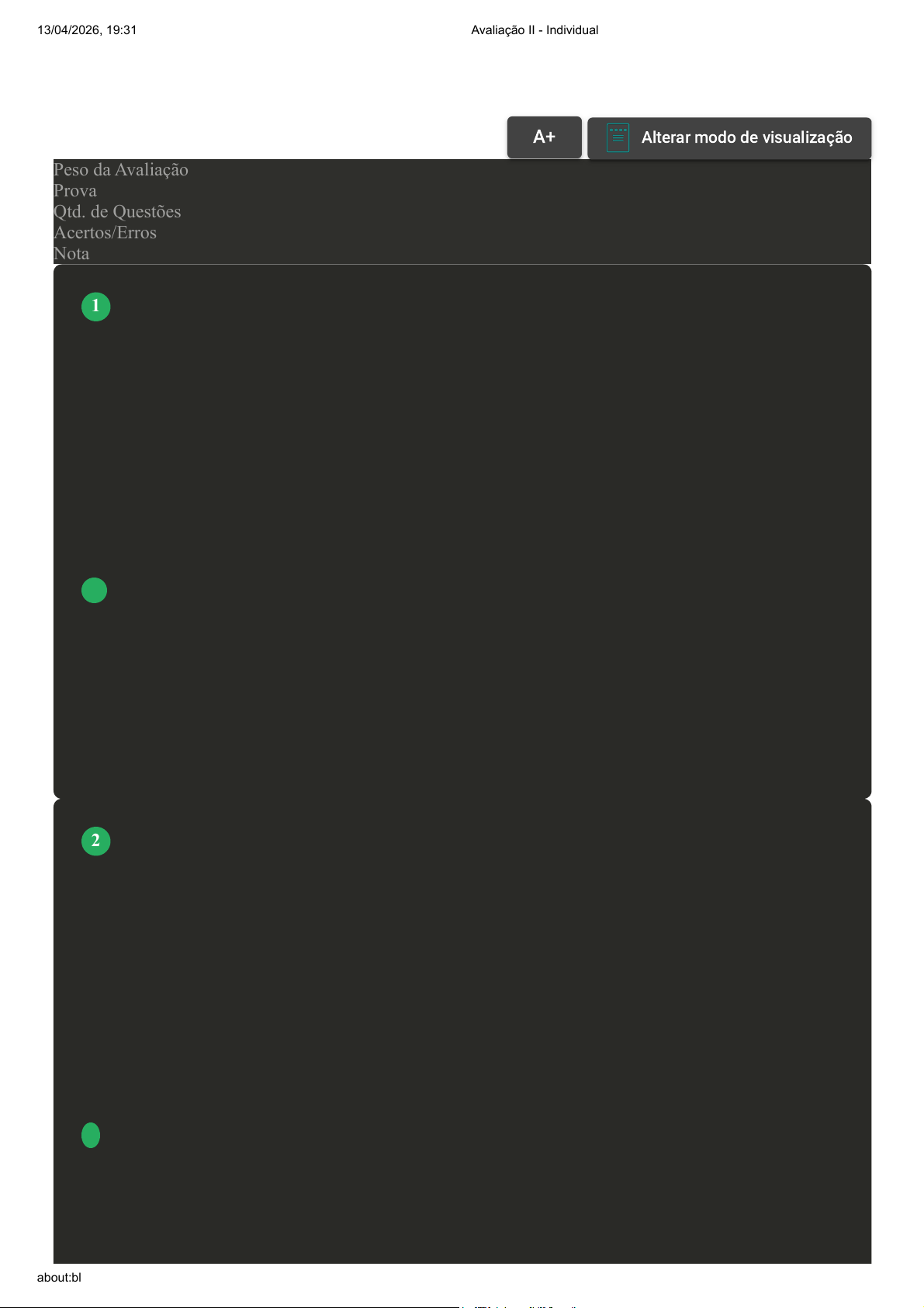 13/04/2026, 19:31 Avaliação II - Individual