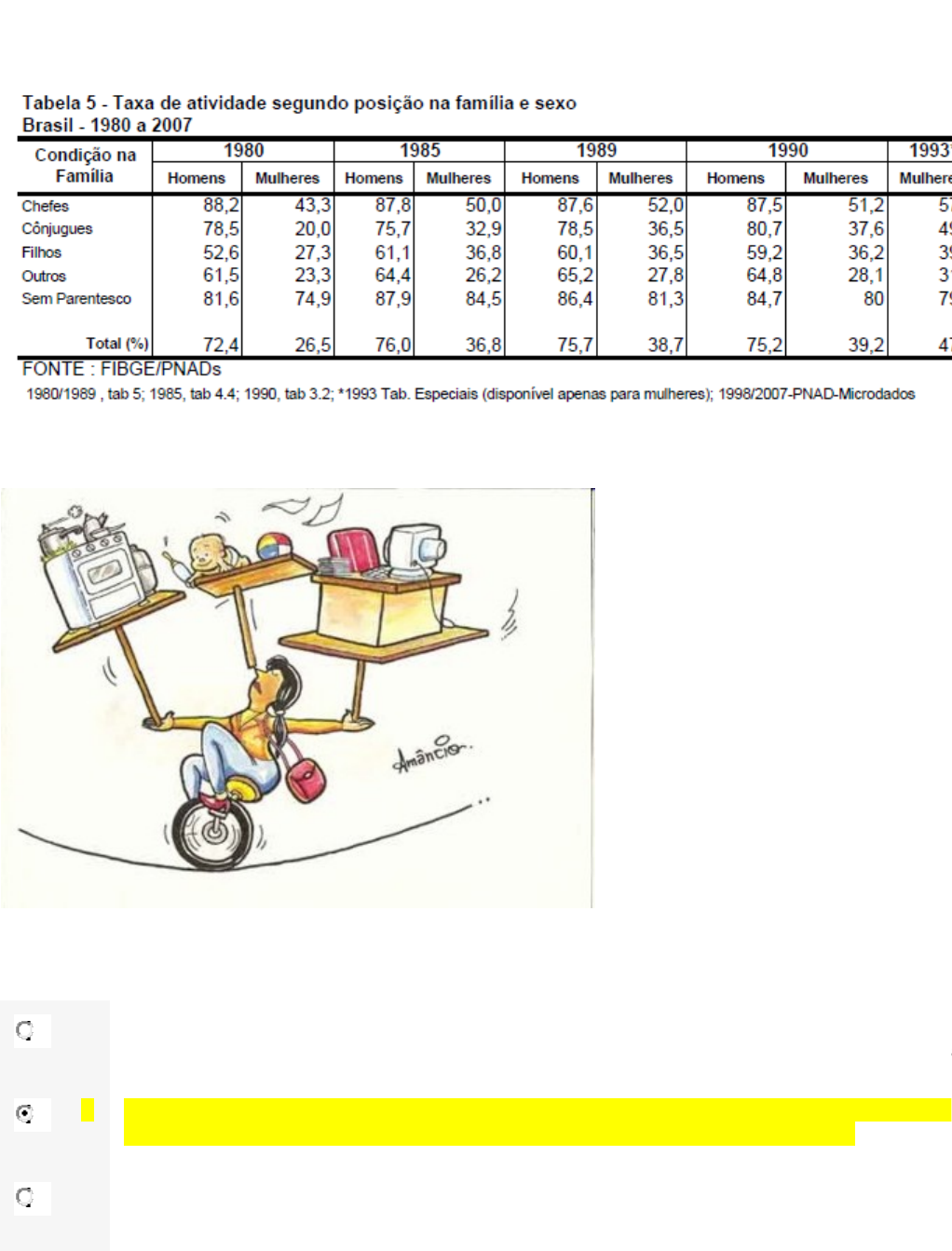 Questão 1/10 - Ética nas Relações Étnico Raciais Compare os elementos I e II abaixo (dados do FIBGE e a Imagem desenhada): A partir desses elementos e em conjunto ao que você acabou de ler sobre a questão dos gêneros, podemos afirmar que ambas as situações apresentadas: A Demonstram quão devotado aos sentimentos é o gênero feminino, pois mesmo sem poder dar conta dos trabalhos de casa, desde a década 80 é possível compreender que cada vez mais mulheres se tornarem chefes de suas famílias. B Demonstram que o número de chefes de família do gênero feminino teve um aumento significativo, porém há ainda uma divisão de trabalho desigual entre homens e mulheres ao que diz respeito aos afazeres domésticos. C Ambos os elementos nos fornecem dados suficientes, bem como os estudos que encerram esta temática, de que a tarefa doméstica cabe única e exclusivamente à mulher, pois é natural que seja sempre como foi. D O primeiro elemento nos serve de recurso para apontar que sempre o homem foi mais ativo que a mulher, por isso, cabe a ela ser mais sentimental, tal como nos sugere o segundo elemento analisado – no qual a mulher cuida (na medida do possível) de uma criança. E Demonstram a versatilidade da mulher em dar conta do trabalho doméstico e dos demais afazeres a que se propõe, pois elas sempre foram a maioria da população ativa, além do mais, nossos estudos deixam não deixam dúvida de que a mulher só deseja ser reconhecida como ser essencialmente sentimental que é. Questão 2/10 - Ética nas Relações Étnico Raciais Analisando a imagem a seguir (Narciso, de Caravaggio) e segundo o que você estudou nesta temática: Qual das frases a seguir melhor traduz a situação exposta na figura? Qual das frases a seguir melhor traduz a situação exposta na figura? A O outro sempre vai ser um inferno em minha vida, não importa o que o faça ou deixe de fazer, nunca consigo que ele me deixe em paz. B O outro sempre aparece, primeiramente, de maneira conflituosa para a consciência: para o “EU”. C O meu “EU”, representado aqui a consciência é sempre mais importante que qualquer outro que seja. D O outro só é conflito, enquanto eu não o enxergo como amigo, assim se continuar vendo-o como diferente, ambos jamais teremos paz. E O conflito é desfeito para sempre, quando entendo que todos temo direitos e deveres, e o outro é exatamente igual a mim. Questão 3/10 - Ética nas Relações Étnico Raciais A evolução semântica paralela de Ética e Moral a partir de sua origem etimológica não denota nenhuma diferença significativa entre esses dois termos, ambos designando fundamentalmente o mesmo objeto, a saber, o costume socialmente considerado, seja o hábito do indivíduo de agir segundo o costume estabelecido e legitimado pela sociedade. VAZ, Henrique C. de Lima. Escritos de Filosofia IV: Introdução à Ética Filosófica 1. p. 14. São Paulo: Loyola, 1994. Henrique Vaz apresenta que a origem do termo moral traz o mesmo significado do termo Ética. Contudo, a evolução dos estudos éticos permite realizar uma diferenciação, conforme expressam as asserções a seguir: Ética é a reflexão sobre as atitudes do homem tendo em vista a busca do bem da sociedade. ENQUANTO QUE Moral são as regras construídas socialmente que determinam o comportamento de forma universal. Sobre a veracidade e a relação entre as asserções: A Ambas as asserções são verdadeiras e estabelecem a diferenciação entre Ética e moral. B Ambas as asserções são verdadeiras, mas apontam a complementação entre os termos Ética e moral. C Apenas a asserção sobre Ética é verdadeira, pois a moral não é universalizável. D A asserção sobre Ética é falsa por desconsiderar seu aspecto prático; sobre moral é verdadeira. E Ambas as asserções são falsas por inverterem as definições de Ética e moral. Questão 4/10 - Ética nas Relações Étnico Raciais Devemos entender que em nossas interações nas relações com os outros existem, ao menos, quatro maneiras de nos dispormos em relação a outrem, quais se caracterizam como empatia, simpatia, antipatia e apatia. Diante disso, assinale abaixa a(s) alternativa(s) que se aplica à explicação respectiva dos termos sublinhados. A A adoção da condição ou situação emotiva de outrem, como se fosse a nossa própria; O acolhimento de situações ou palavras alheias com bom estado de ânimo nas ações; A aversão à situação ou ação do outro; A indiferença mediante a situação ou condição de terceiros. B A adoção da compaixão e amor de si; a aversão à situação ou ação do outro; A indiferença mediante a situação ou condição de terceiros; A ação caridosa para com o diferente; O acolhimento de situações ou palavras alheias com bom estado de ânimo nas ações. C O acolhimento de situações ou palavras alheias com bom estado de ânimo as ações; Tomar decisão no lugar do outro, já que este se encontra impossibilitado de decidir; Nunca deixar se abater pela fala alheia, pois o outro não me conhece; A adoção da condição ou situação emotiva de outrem. D A alteridade; a discórdia constante com situações e palavras alheias, O acolhimento de situações ou palavras alheias com bom estado de ânimo as ações; A indiferença mediante a situação ou condição de terceiros; E A adoção da condição ou situação emotiva de outrem, como se fosse a nossa própria; O amor nas ações para com o outro em maior medida do que o amor próprio; A adoração da figura do outro; O ódio (ou raiva) diante da situação ou conduta de terceiros Questão 5/10 - Ética nas Relações Étnico Raciais As relações que se passam entre os homens podem ser estudadas segundo nexos lógicos dessa natureza, como acontece na Sociologia, mas esta opera também com juízos de valor, formulando apreciações de natureza valorativa ou axiológica sobre os fatos sociais observados. Já ocorre algo de diverso 